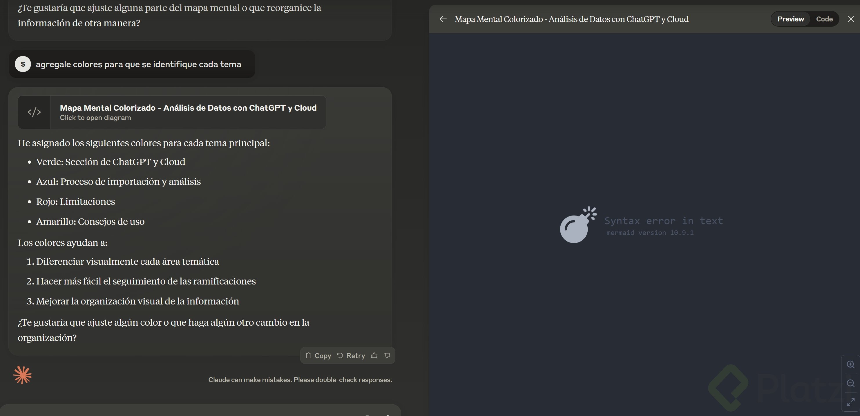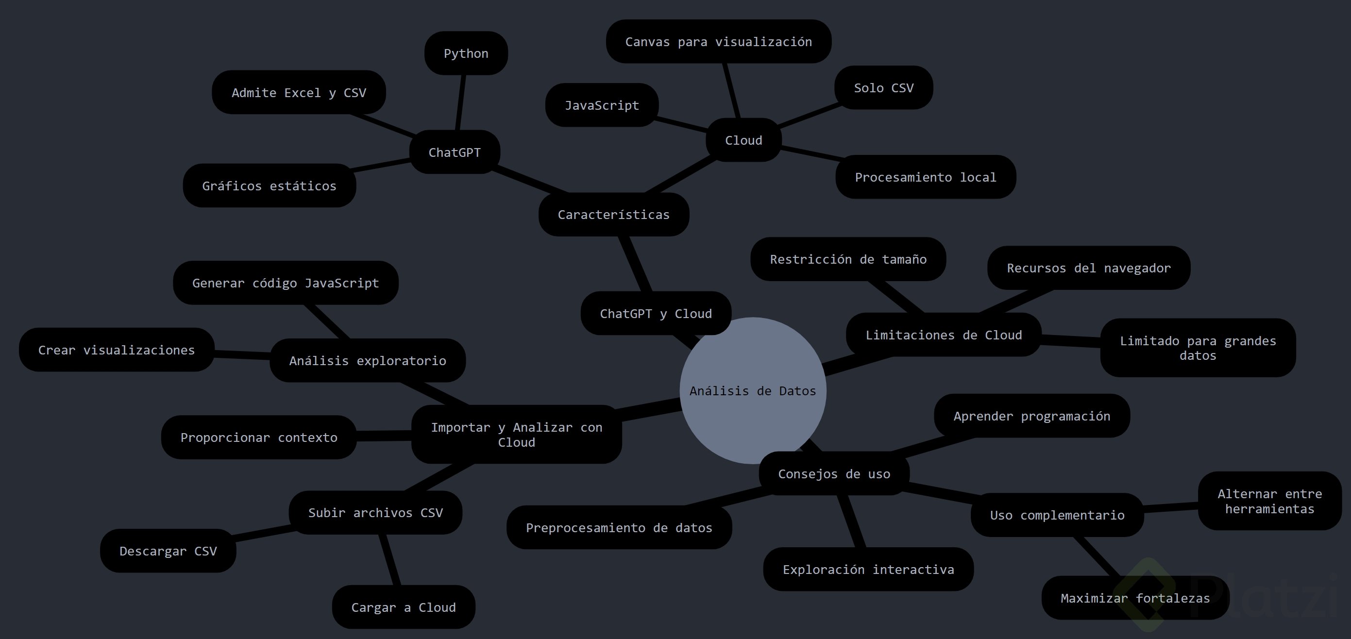 Limitaciones de tamaño: Claude puede tener restricciones en el tamaño de los conjuntos de datos debido a la capacidad limitada de su entorno de ejecución basado en navegador.