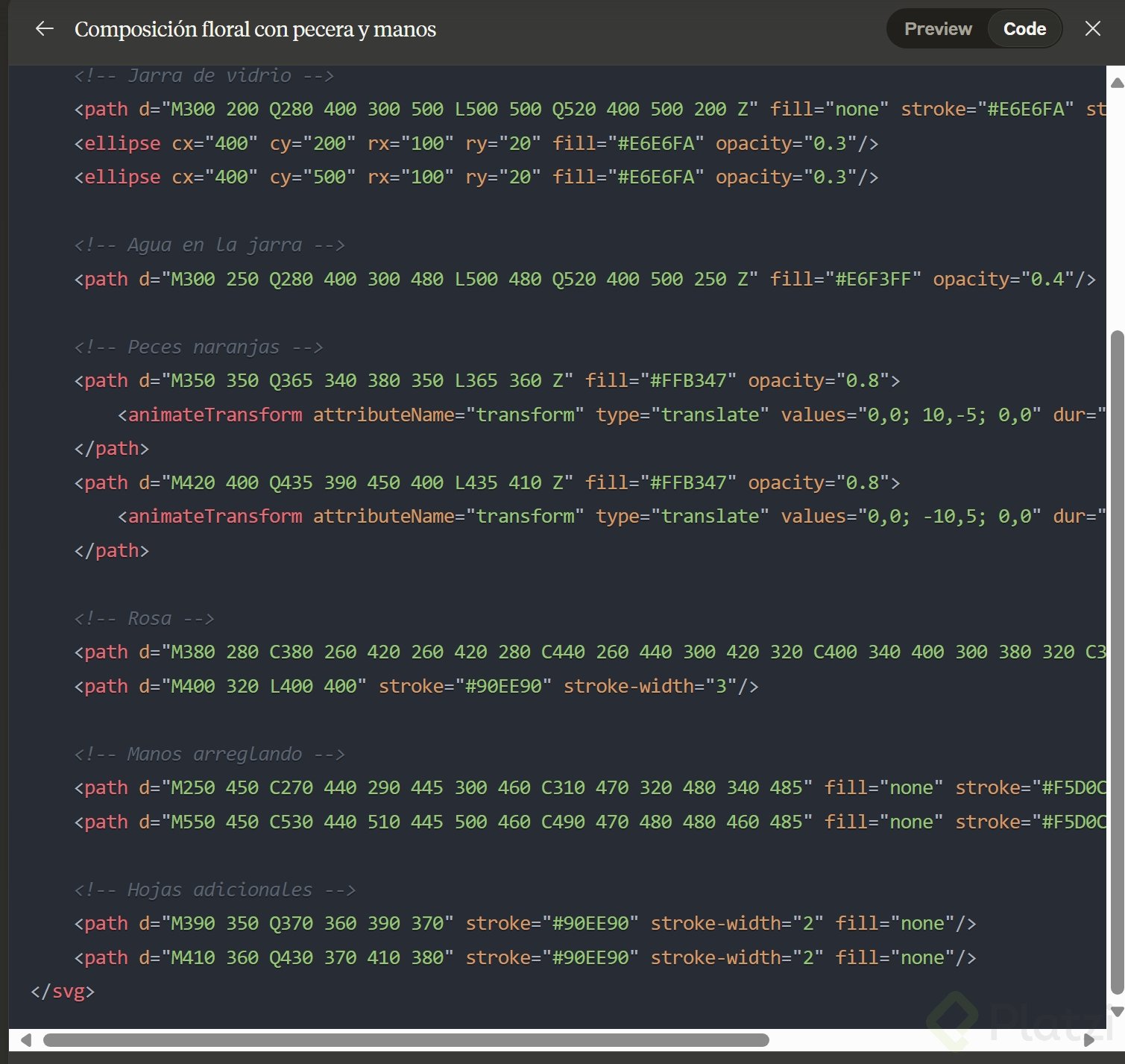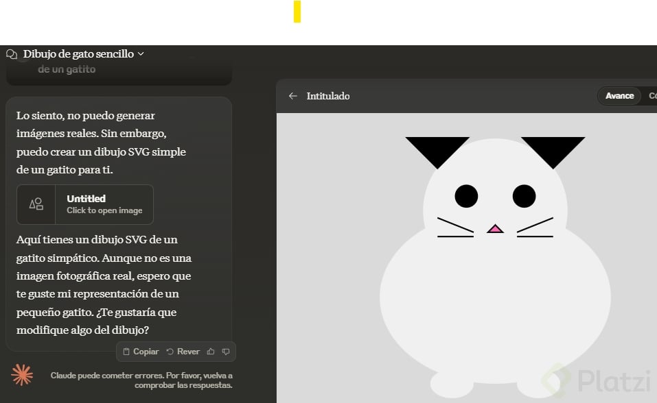 Claude, al no poder generar imágenes, crea código que permite construir una imagen sencilla utilizando formas geométricas.