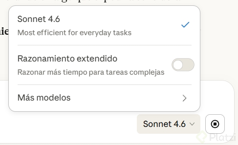 - Botón del reloj: activa el pensamiento extendido en cualquier modelo.
