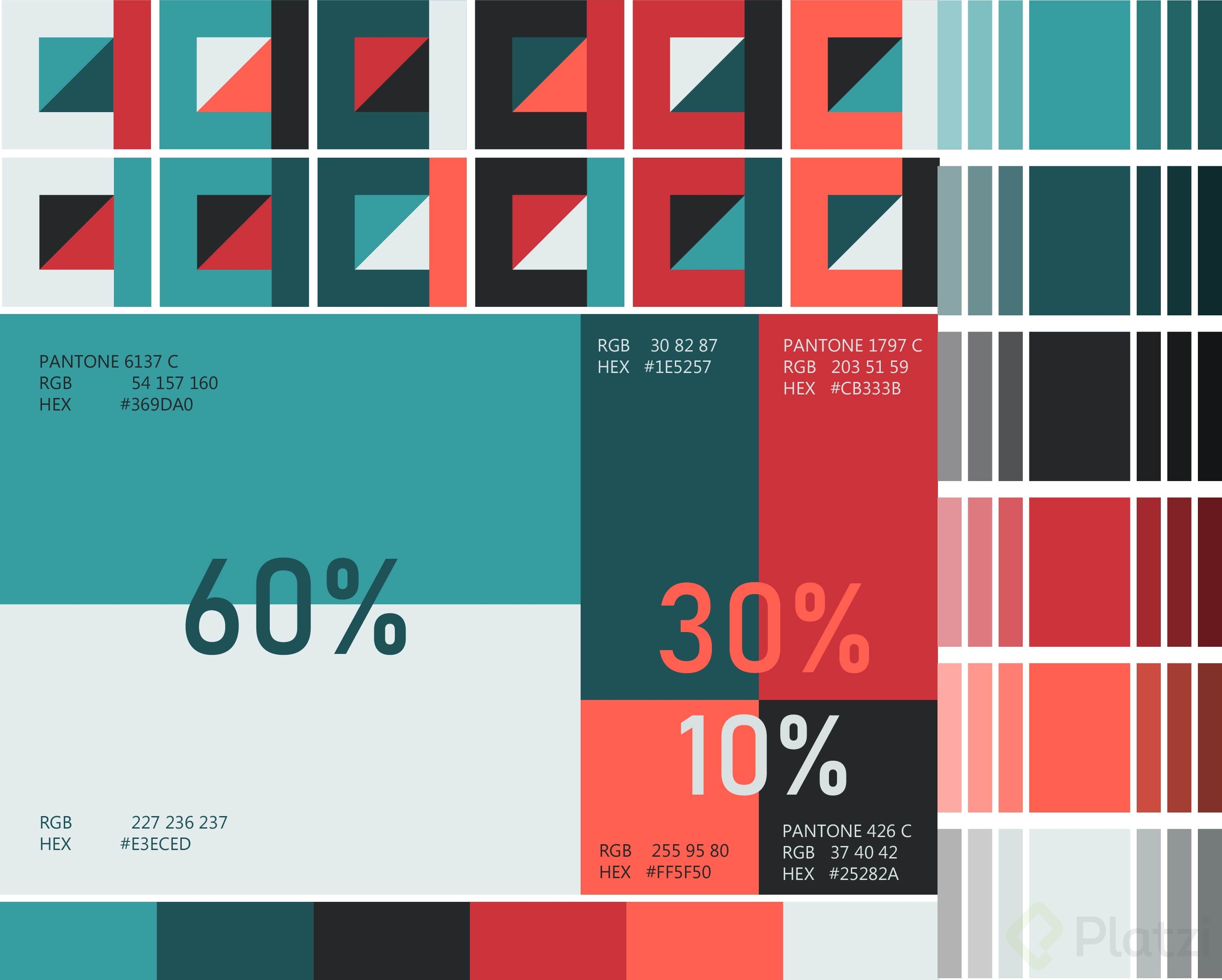 La proporción es un aspecto vital al hablar de paletas de colores. La proporción clásica es 60-30-10: