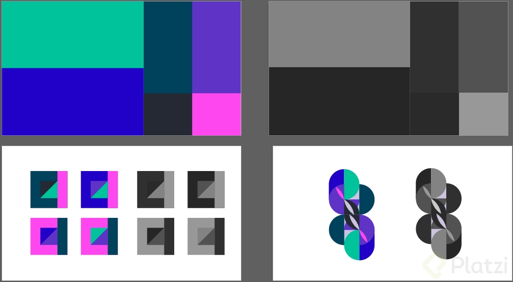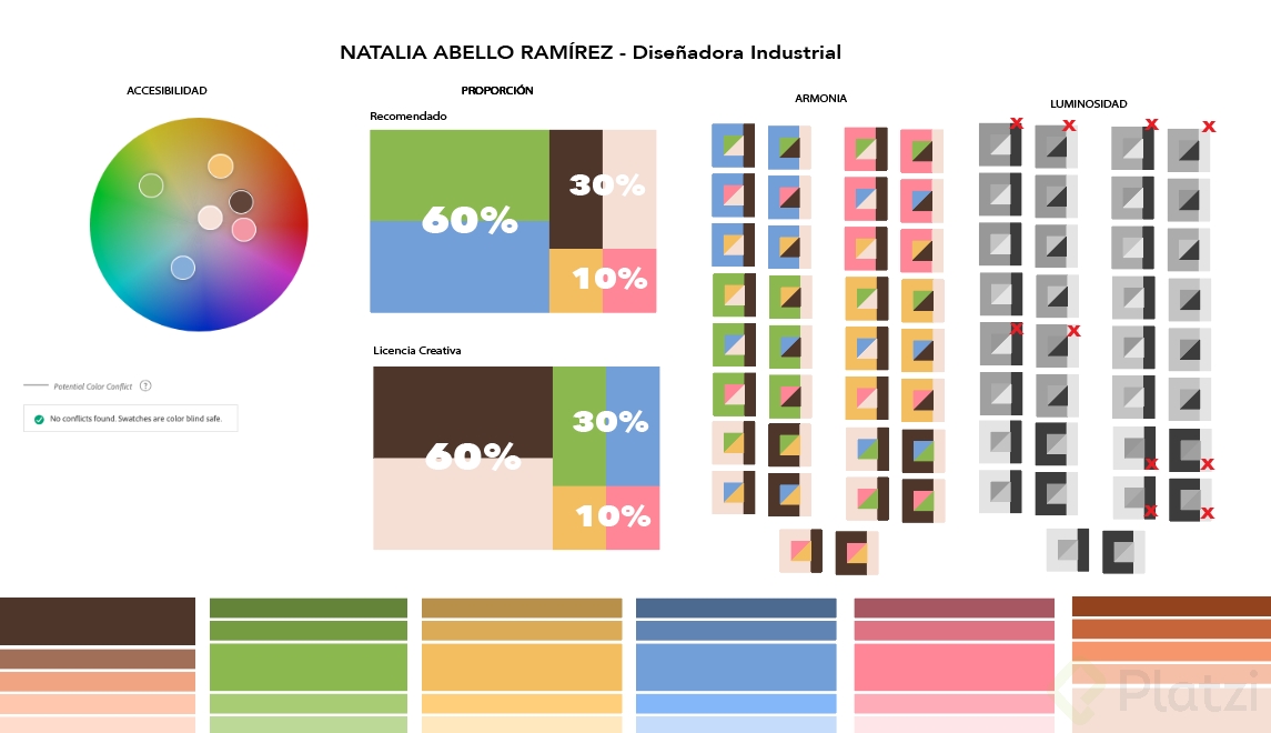 Sin embargo, es completamente válido romper las reglas para explorar diferentes expresiones visuales. Por ejemplo, aumentar el porcentaje de acentos si deseas un diseño más vibrante.