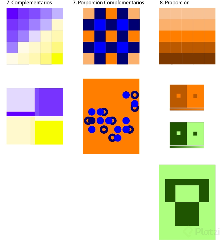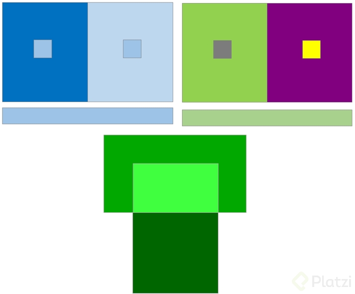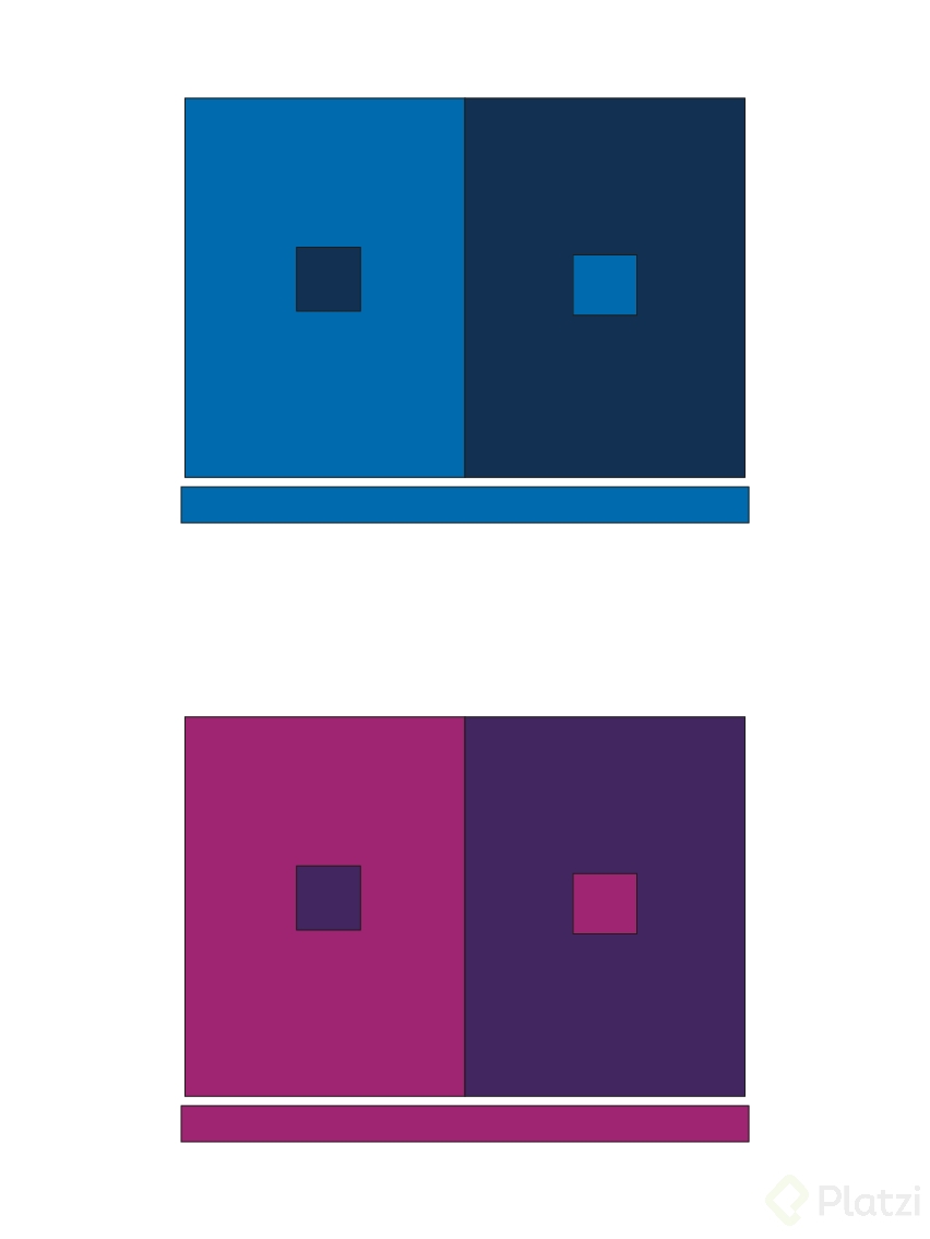 - Luminosidad y calidez: Un mismo verde puede parecer más cálido y luminoso sobre un fondo oscuro y frío, mientras se verá más apagado sobre un fondo cálido y claro.