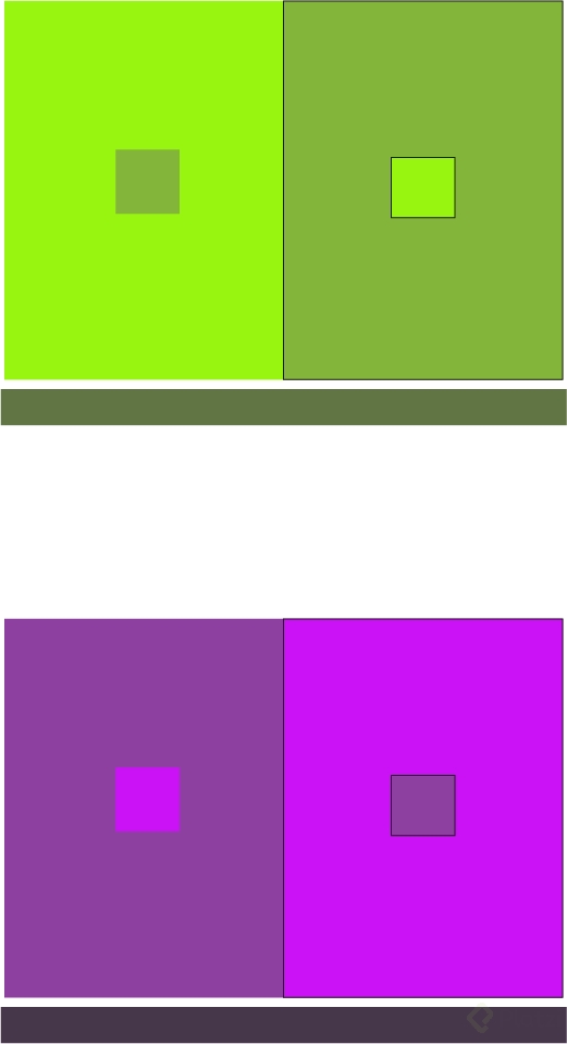 - Fondeo oscuro vs. claro: Un verde medio se transforma visualmente en dos tonos distintos al colocarlo sobre fondos oscuros y claros.