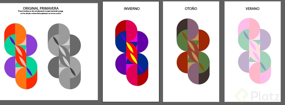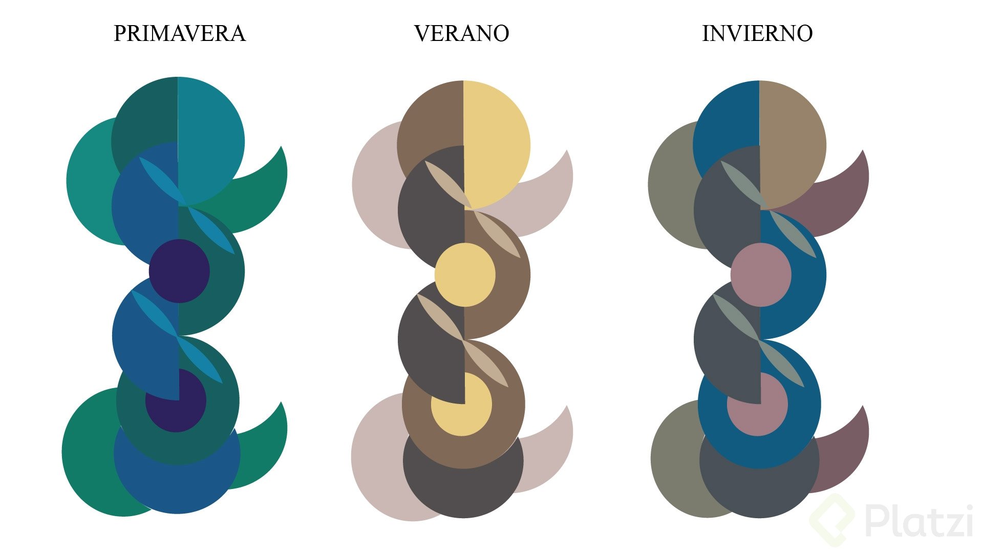 Esta clasificación te ayuda a seleccionar y manipular colores que resuenen emocionalmente con el espectador, adaptando las combinaciones a la estación que desees evocar.