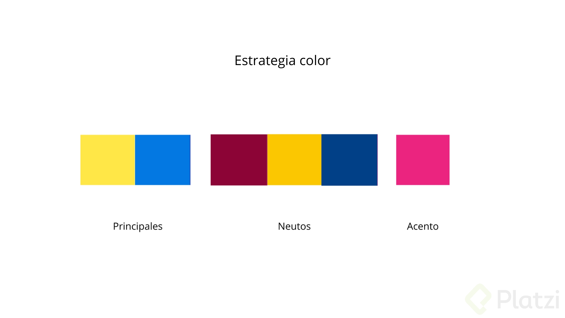 Divide tu paleta en colores principales, neutros y acentos. Los principales deben comunicar la voz de la marca, mientras que los neutros ofrecen soporte visual. Los colores acento, por su parte, añaden dinamismo y pueden resaltar aspectos clave de tu mensaje. La selección estratégica potencia la comunicación efectiva del mensaje de la marca.