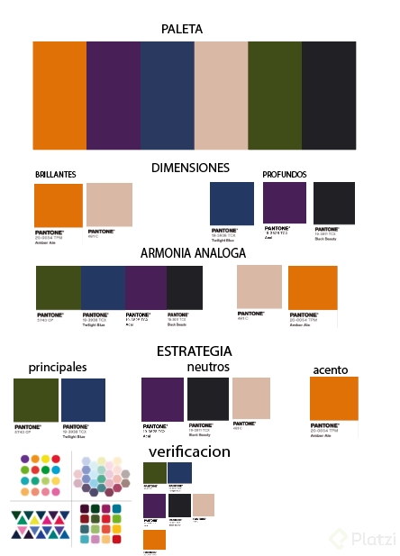Para que una paleta de color sea sólida y coherente, es necesario trabajar estratégicamente en tres aspectos: dimensión, armonía y estrategia de uso. Estos aspectos aseguraran que los colores no solo sean estéticamente agradables, sino que también comuniquen efectivamente el mensaje de tu marca.