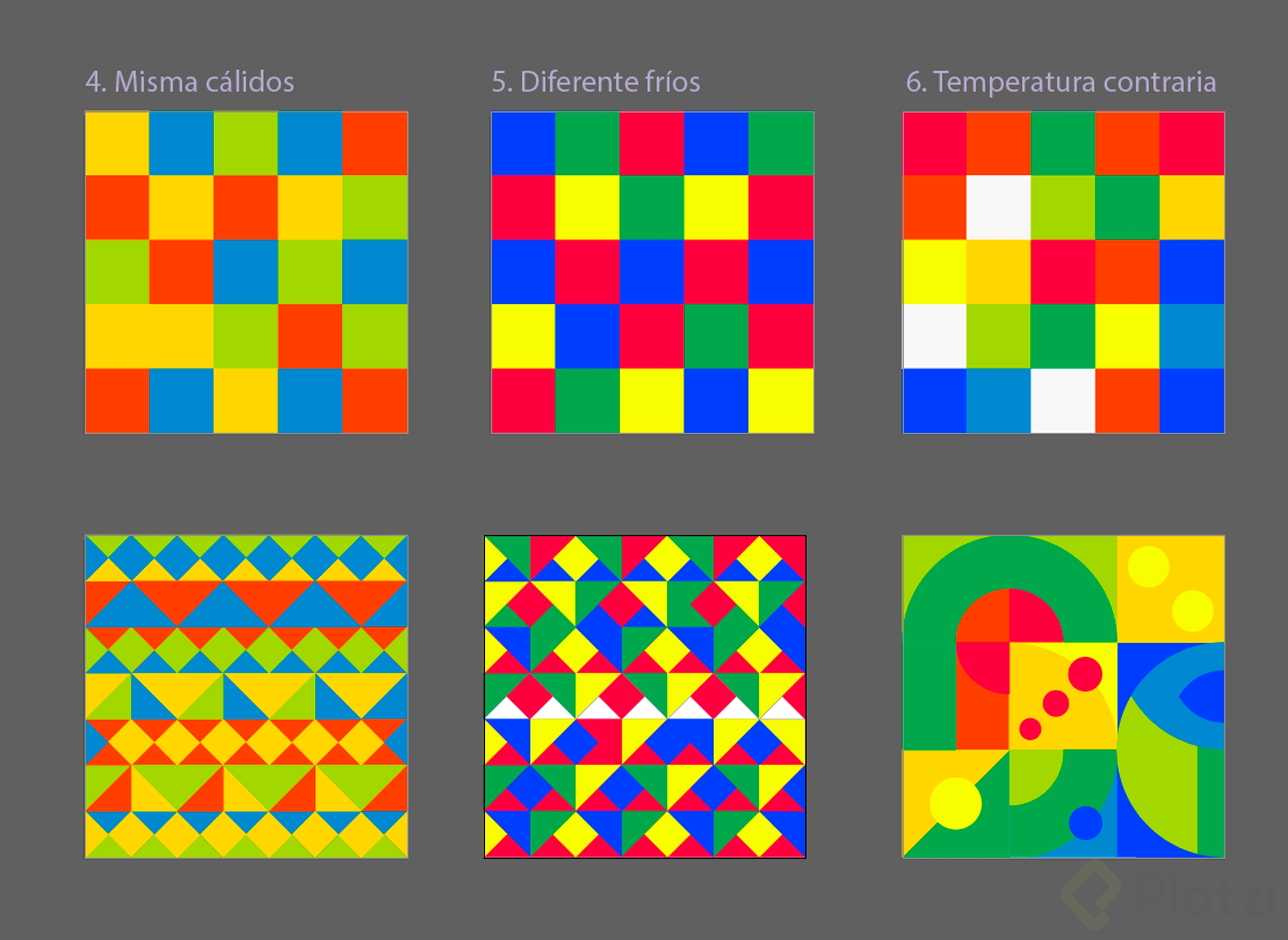 El contraste es un pilar en el diseño y la temperatura de color es una herramienta fundamental para lograrlo. Usar un fondo frío con un acento cálido crea un notable contraste que atrae la atención. Alternativamente, también puedes explorar componer con solo colores cálidos o fríos en diferentes matices, lo que ofrece distintos niveles de curiosidad visual.