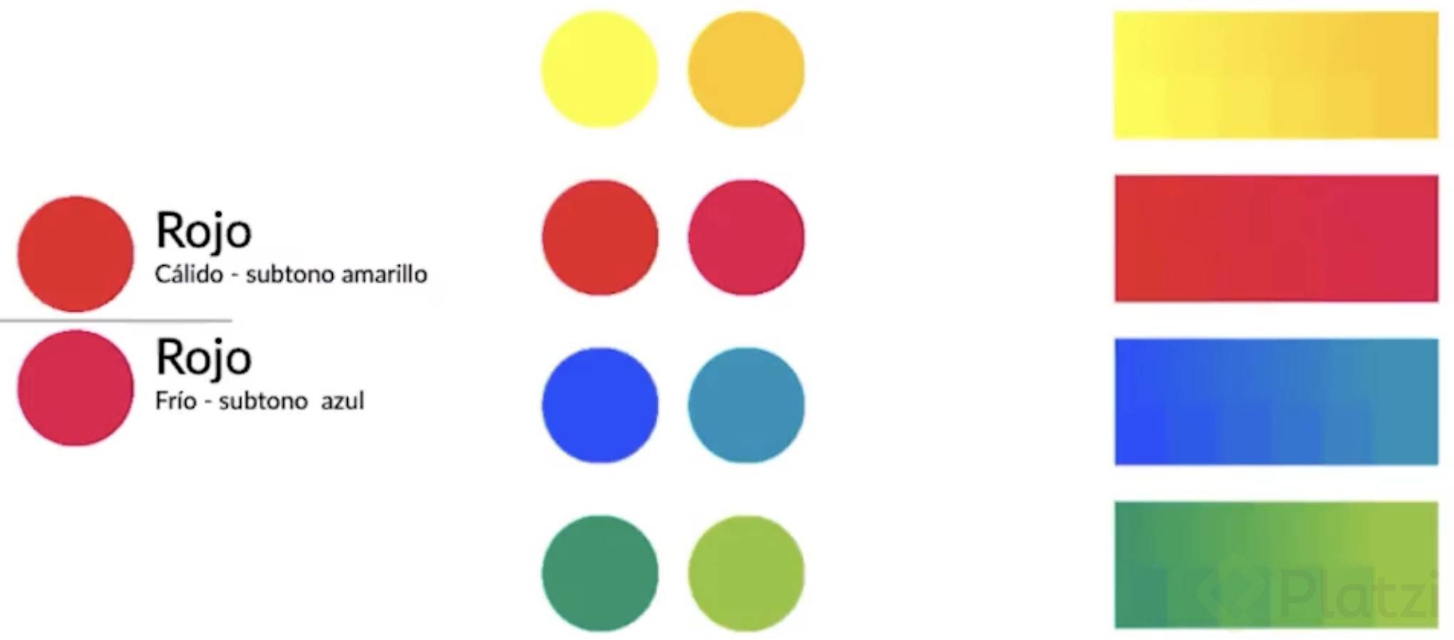 Por ejemplo, un rojo con un subtono amarillo será cálido, mientras que uno con un subtono azul se acercará al magenta, volviéndose más frío.