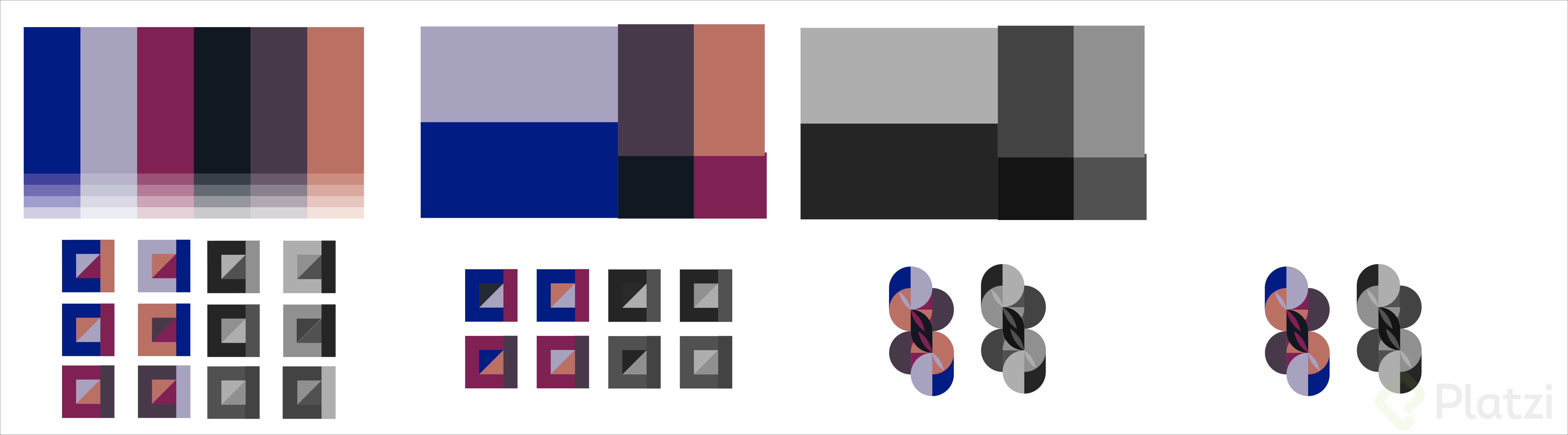 Una vez tengas tu composición en grises evalúa si tiene buen contraste. En caso de no ser así puedes cambiar de matiz o dimensión los colores que no estén funcionando. Recuerda que el uso de color en el diseño es un juego de contrastes que genera legibilidad.