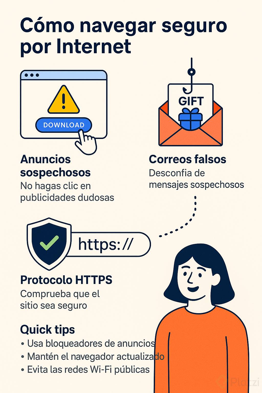 Navegando por internet te encontrarás con páginas web que tendrán varios anuncios publicitarios (para generar ingresos económicos) que pueden confundirte o redireccionarte a algún sitio malicioso.