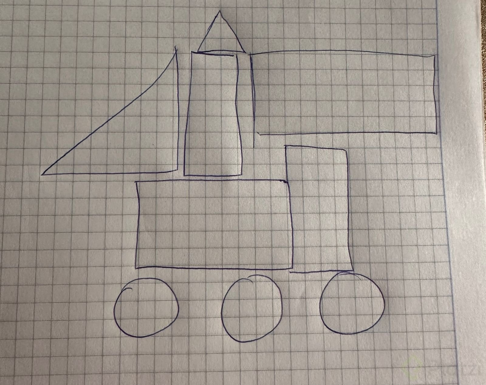 - Paso 5: encima de ese rectángulo pequeño, dibuja un triángulo.