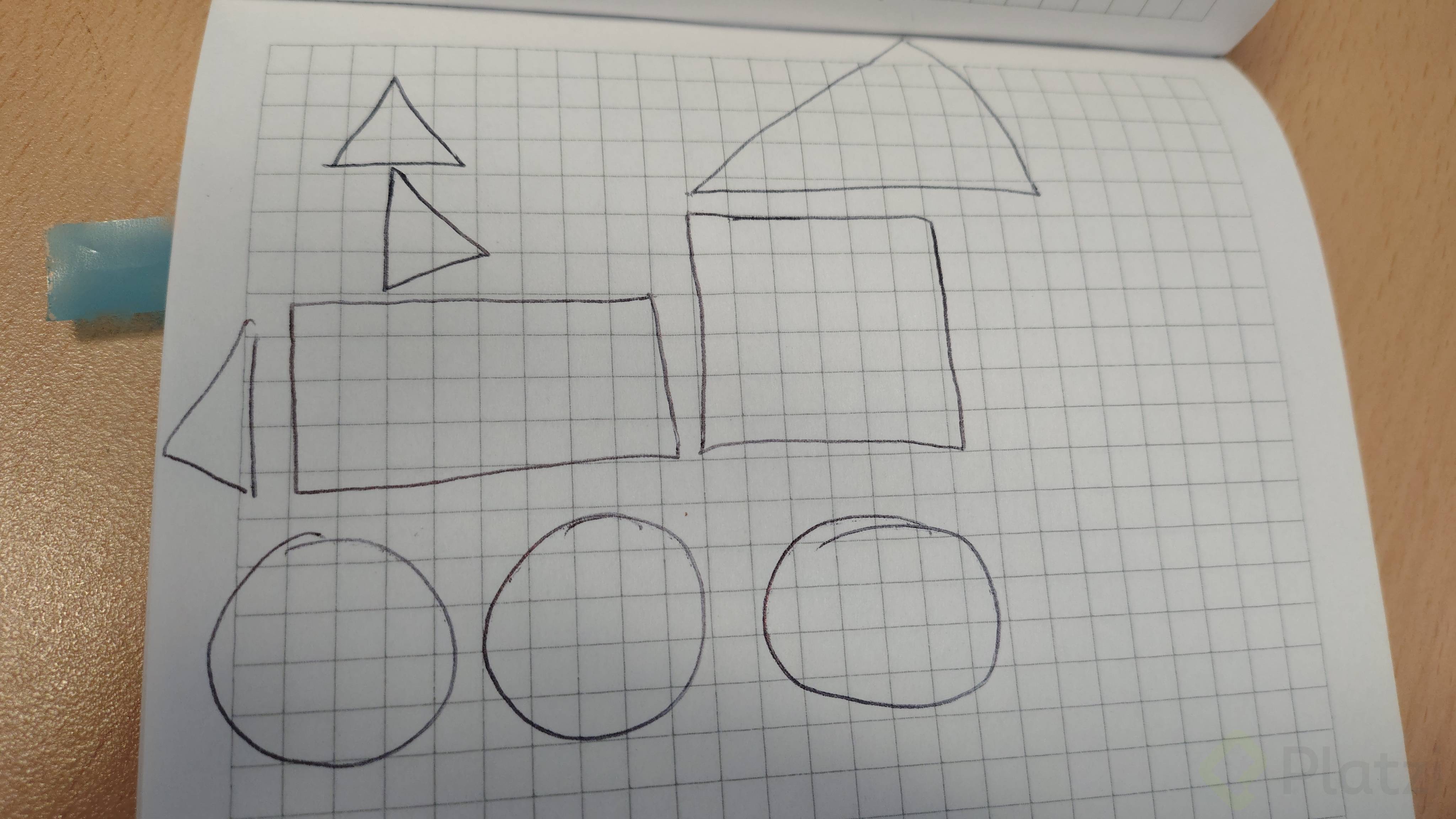 - Paso 7: dibuja tres círculos grandes debajo de las figuras alineados horizontalmente.