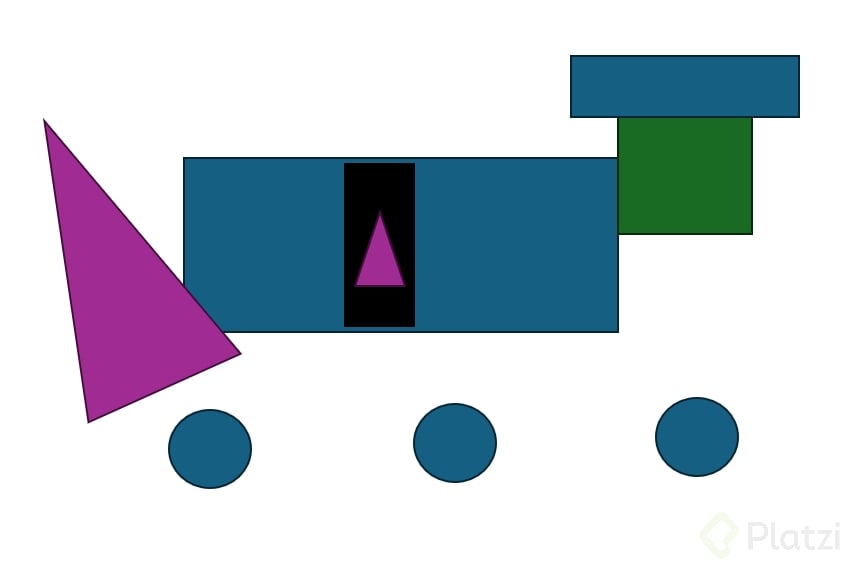 - Paso 6: a la izquierda del rectángulo horizontal, dibuja un triángulo grande con la punta hacia la izquierda.