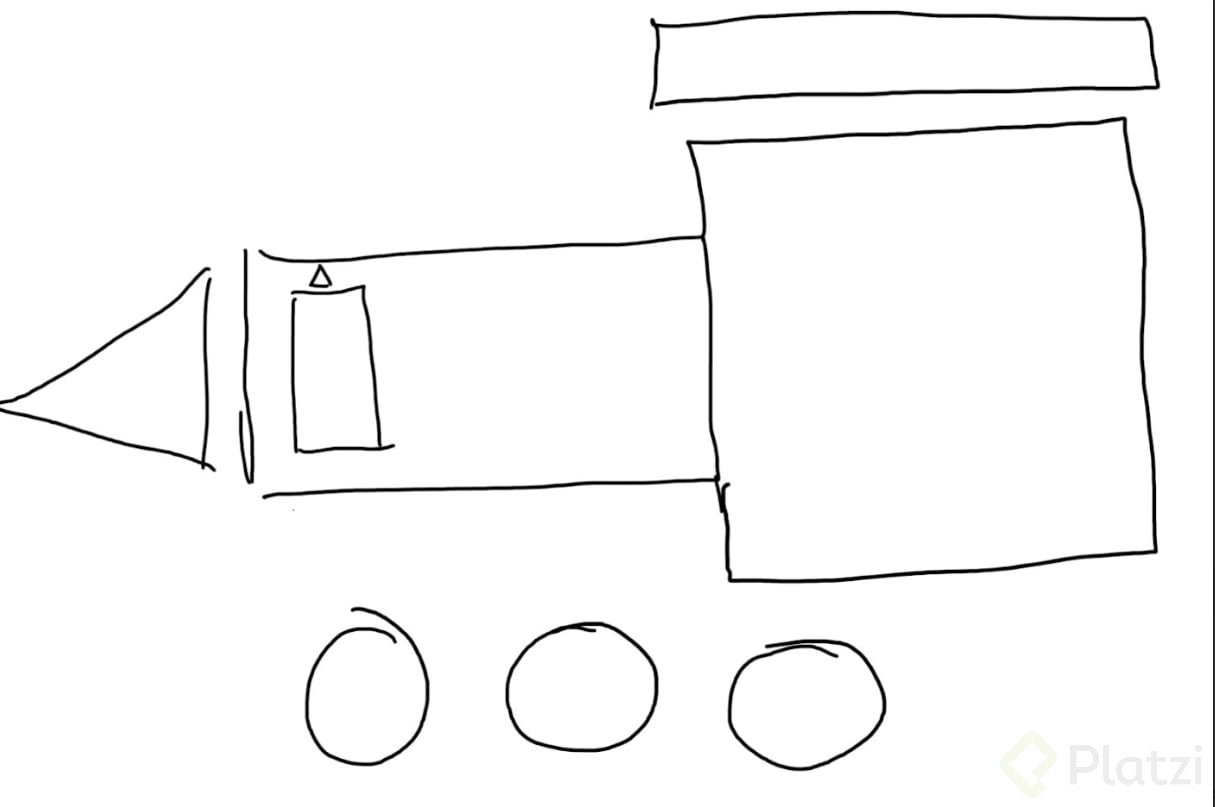 - Encima del rectángulo horizontal situándose a la izquierda, dibuja un rectángulo pequeño y vertical.