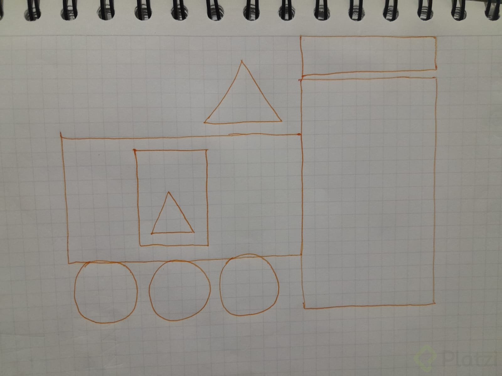 - Pon un triángulo arriba de este rectángulo pequeño.