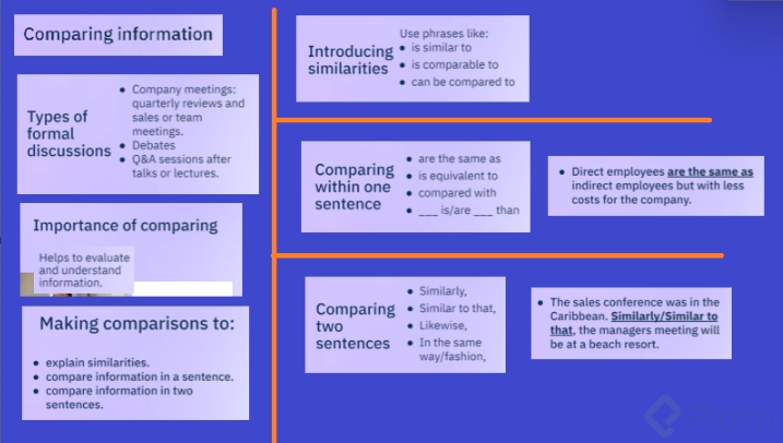 Participar en discusiones formales es esencial para el crecimiento profesional, ya sea en reuniones de equipo, sesiones de ventas, revisiones trimestrales, debates o conferencias. Mejorar tu vocabulario y el uso adecuado del lenguaje en estas instancias no solo te permitirá comunicarte con claridad sino también destacar en tu ámbito laboral. A continuación, te proporcionaremos guías efectivas para comparar, contrastar y reformular información durante estas discusiones, destacando varias expresiones útiles.