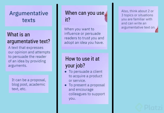 En el curso hemos explorado habilidades importantes de listening y speaking, centrándonos también en algunas frases para comparar, contrastar y reformular información. Ahora, en este módulo, nuestro enfoque cambia hacia la escritura, específicamente en la redacción de textos argumentativos. Pero, ¿qué es realmente un texto argumentativo?