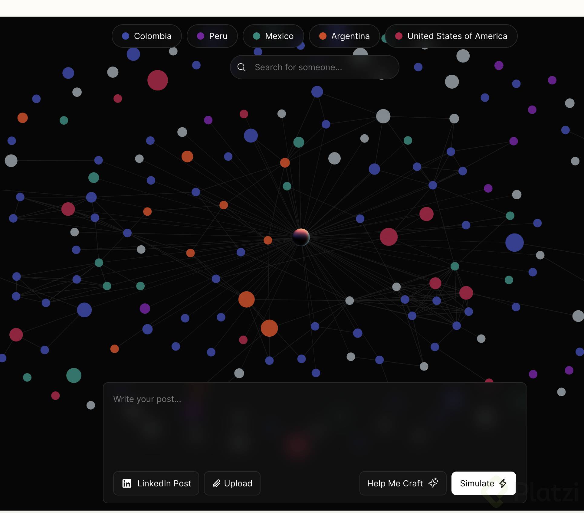 - Diálogo: hacer preguntas de follow-up e incluso hablar con personas específicas de tu red en LinkedIn (ejemplo: Victoria Marcott).