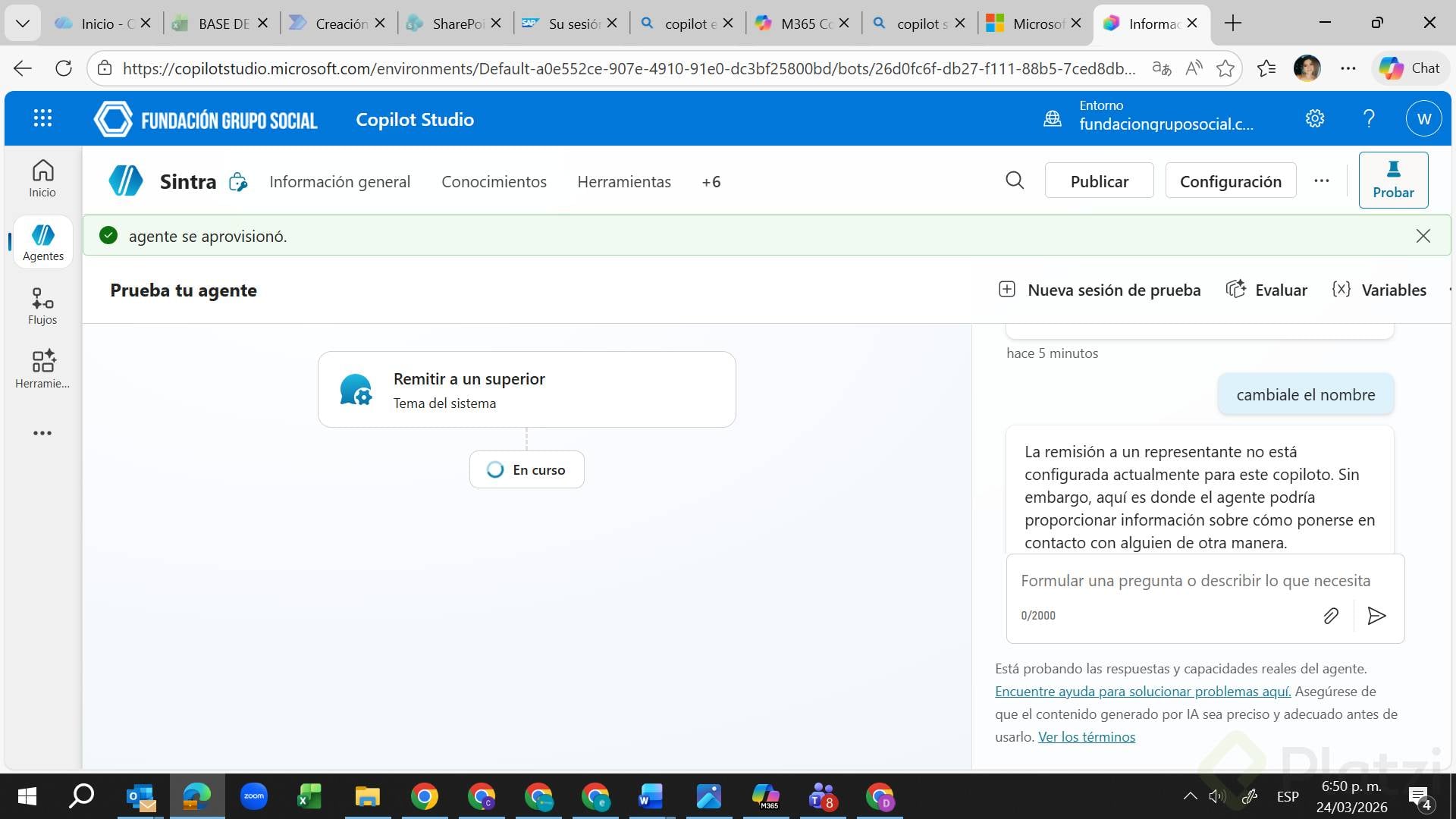 - Si hay bases internas o APIs: crear un conector en Copilot Studio.