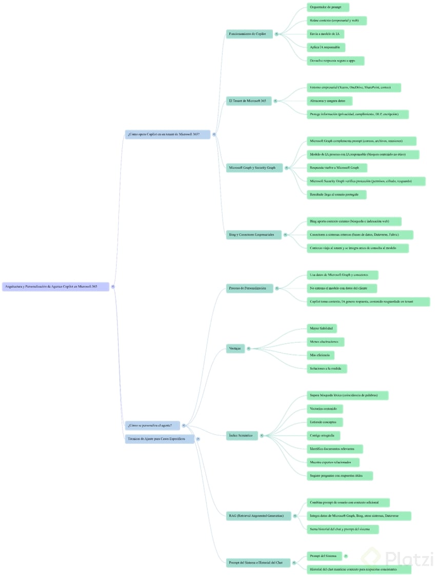 Comprende, paso a paso, cómo opera Copilot dentro de Microsoft 365: del tenant y Microsoft Graph al uso de Bing, conectores empresariales y controles de seguridad. Descubre cómo se personaliza con índice semántico, RAG, prompt del sistema, ingeniería de prompting y fine tuning para reducir alucinaciones y crear soluciones a medida.