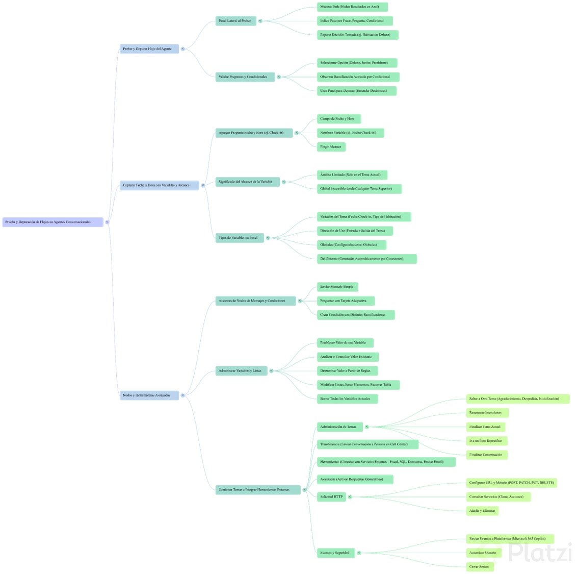 Personaliza un agente de reservaciones con confianza: aquí verás cómo probar, depurar y ampliar un flujo con preguntas, condicionales, variables y herramientas avanzadas. Todo ocurre en la interfaz del agente, siguiendo paso a paso el path que toma cada interacción.