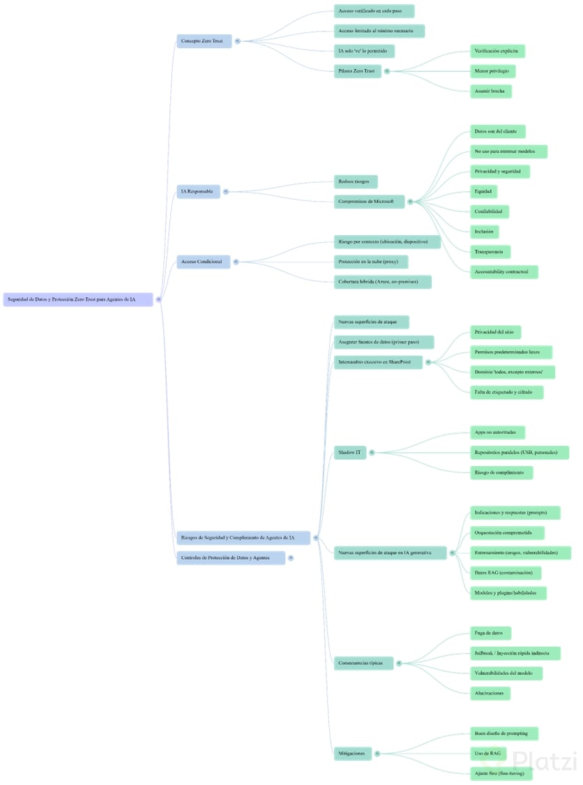 La seguridad de la IA empieza por los datos. Bajo un enfoque Zero Trust, el acceso se verifica en cada paso y se limita al mínimo necesario. Así, un agente solo “ve” lo que tu identidad y tus permisos permiten. Si no abres la puerta, la IA no entra. Este marco, sumado a inteligencia artificial responsable, reduce riesgos como fuga de datos, intercambio excesivo y uso fuera de cumplimiento.