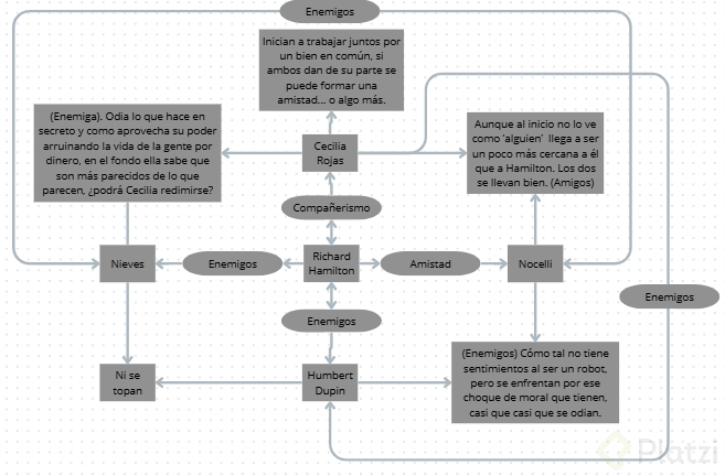 - Desarrollo de historias: Facilita el flujo de las historias al clarificar posibles conflictos o alianzas.
