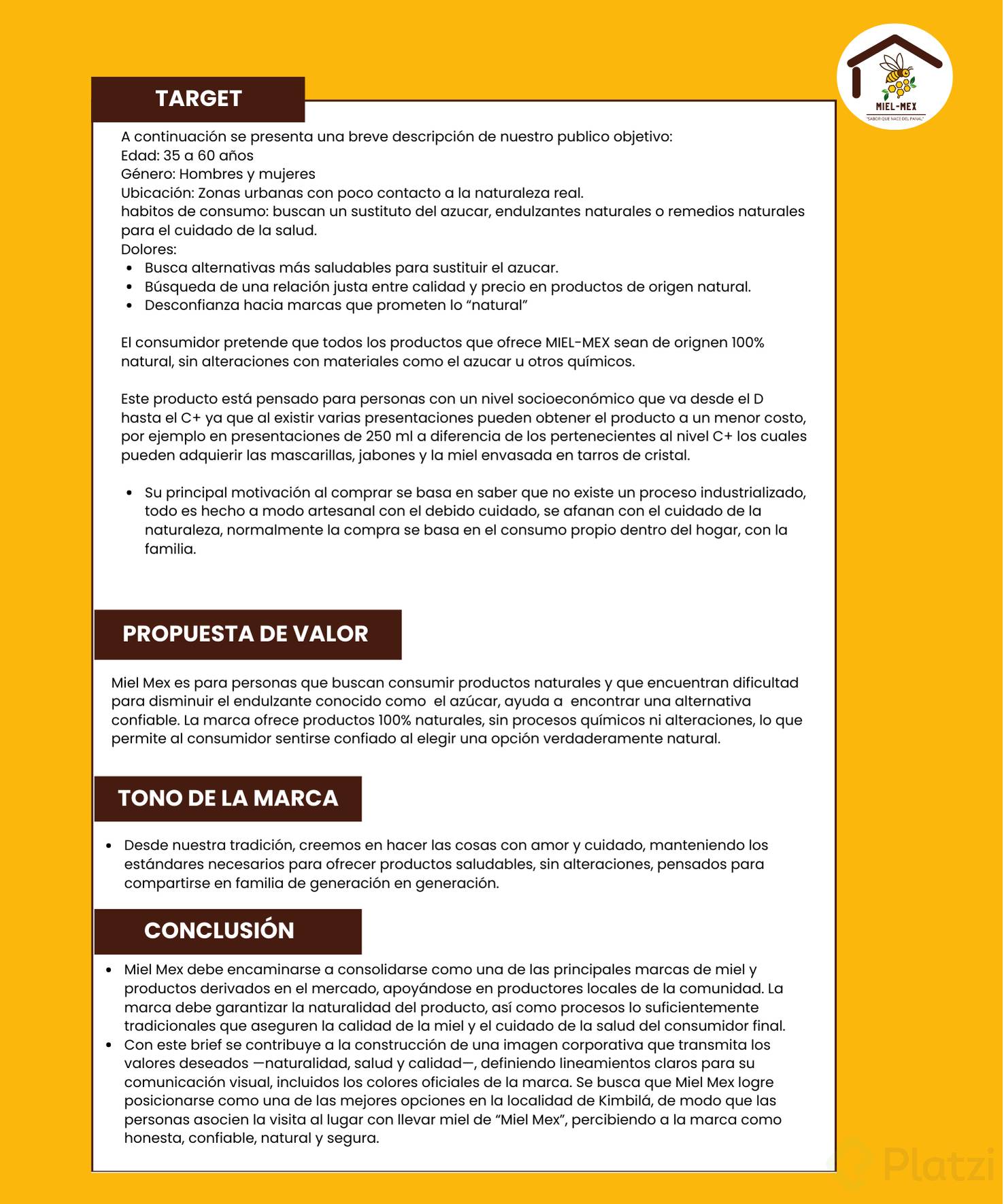 - Incluye una mini historia de la empresa y el valor clave del producto.