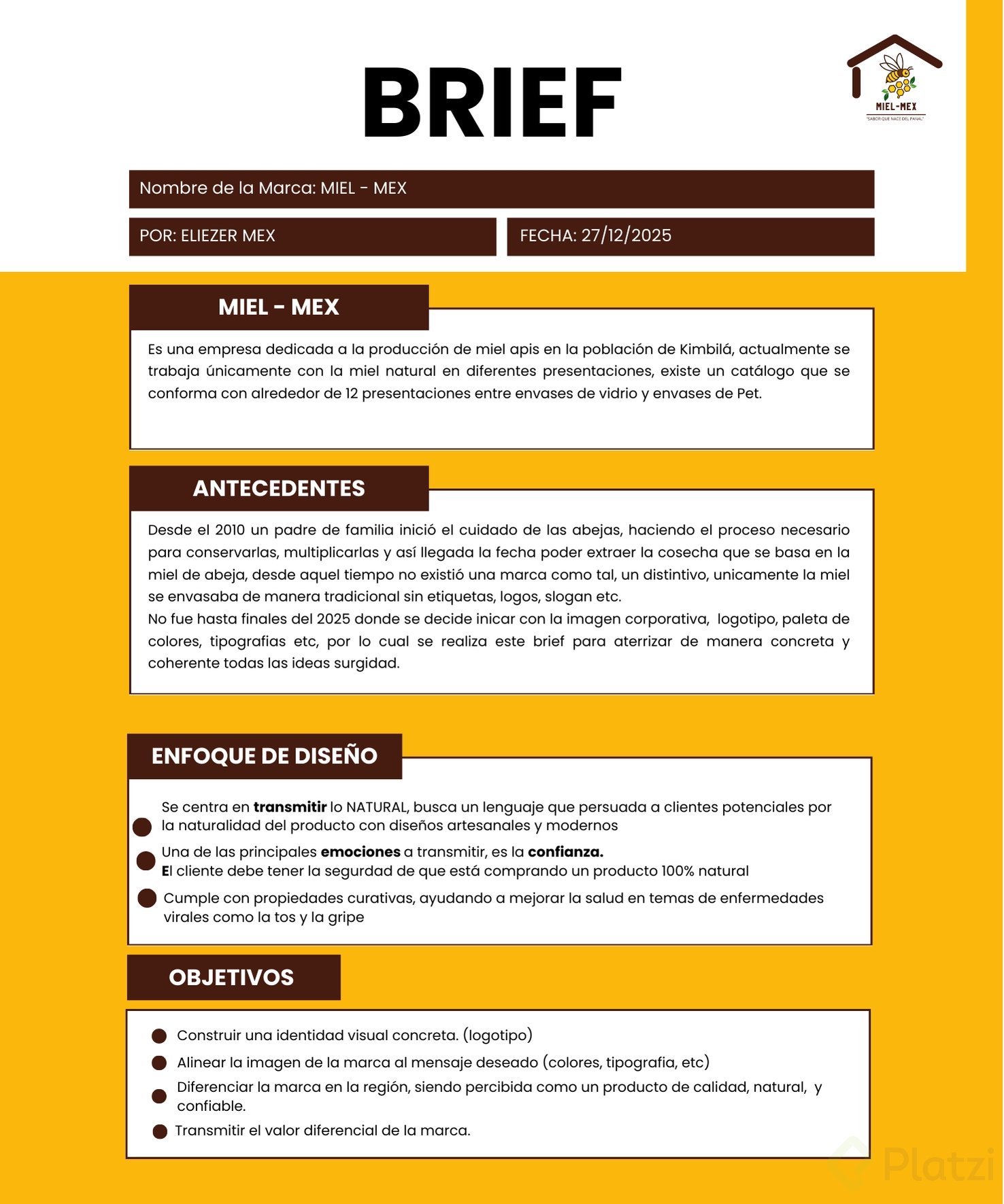 El brief es un documento clave que define metas y alcance del proyecto. Sirve como guía para que todas las personas involucradas, o tú mismo si trabajas solo, tengan las instrucciones claras de principio a fin. Su función es dar dirección, no imponer conceptos cerrados, para que la creatividad tenga espacio pero con un destino superclaro. Aplica si eres consultor, project manager o parte de un equipo.