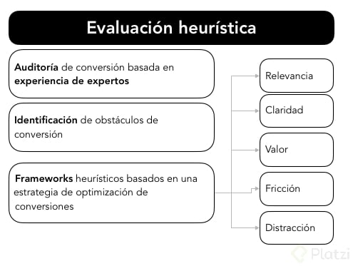 La evaluación heurística es una auditoría sistemática conducida por expertos en usabilidad y experiencia de usuario. Esta práctica se enfoca en revisar un sitio web o producto para identificar áreas que pueden ser optimizadas con miras a mejorar las conversiones. Al usar la experiencia y el conocimiento de los expertos, puedes identificar posibles cuellos de botella y factores que están desviando al usuario de completar sus objetivos.