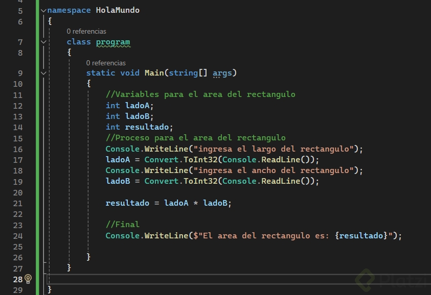Iniciar un proyecto en C# para realizar cálculos puede ser bastante sencillo. Primero, abre un nuevo proyecto de tipo "Console Application" y nómbralo, por ejemplo, "Square Area". Comenzamos declarando y asignando valores a nuestras variables: