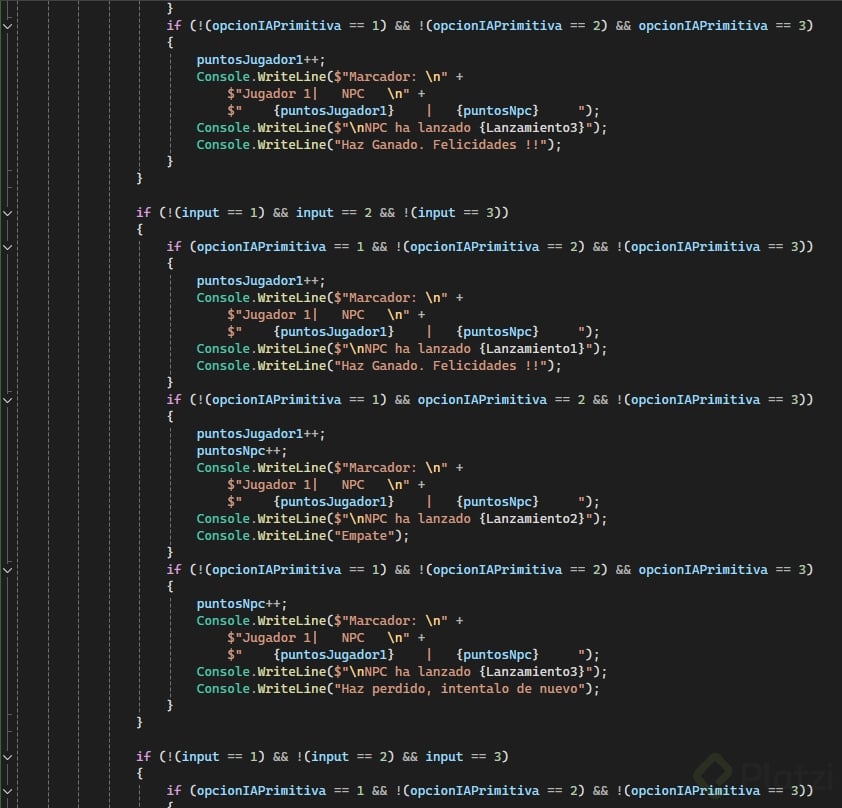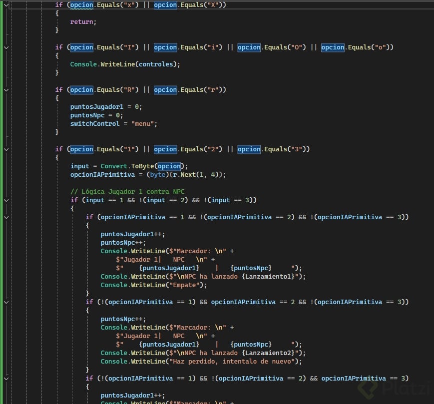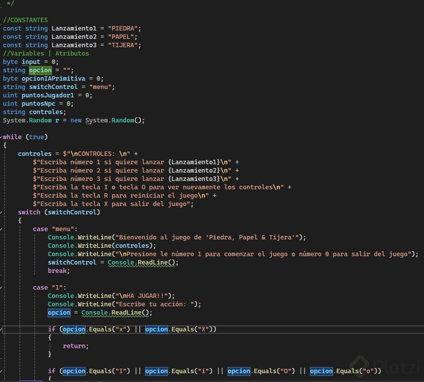 - Piedra, papel o tijera: Crea un juego sencillo implementando decisiones basadas en tres variables.