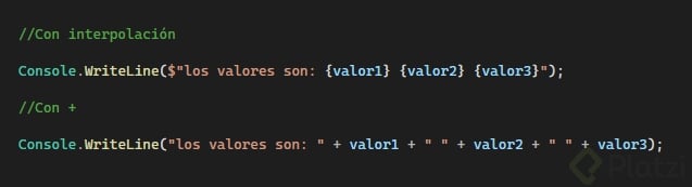 Console.WriteLine("El resultado de valor1 == valor2 es: " + resultado1);