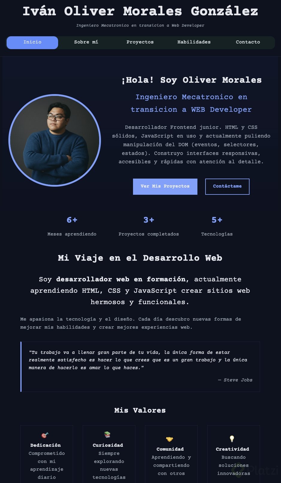 El ejemplo mostrado en computadora confirma que el proyecto ya integra cambios que lo hacen responsive. Al manejar diferentes viewports, el contenido se adapta: los contenedores reorganizan su información y el sitio mantiene una experiencia fluida.