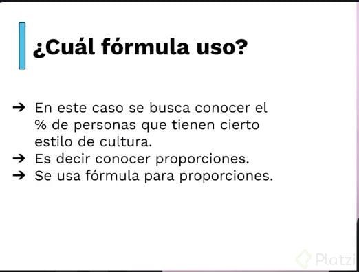 La fórmula se convierte en una herramienta poderosa cuando queremos verificar cuál es la proporción de un estilo organizacional dentro de tu población.