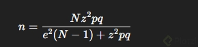\text{n} = \frac{N \cdot Z^2 \cdot p \cdot q}{(N-1) \cdot e^2 + Z^2 \cdot p \cdot q}
