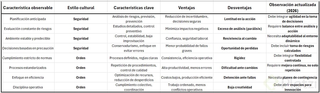 Estilos de Cultura Organizacional: Seguridad y Orden