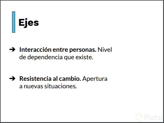 Resistencia al cambio: Analiza la apertura de la organización a nuevos procesos y las modificaciones en el entorno externo. Un estilo cultural puede ser muy innovador y adaptativo, o preferir estabilidad y mínima innovación.