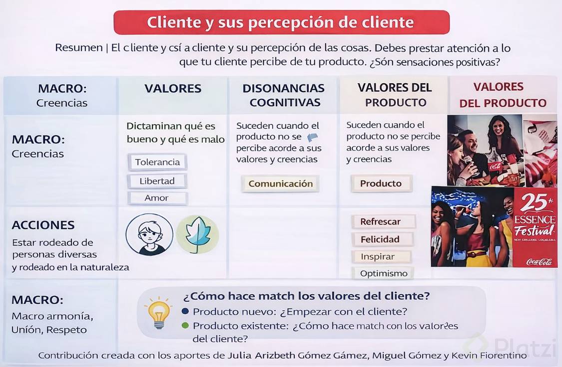 Producto preexistente ¿Cómo hace match los valores del cliente? También fijarse en las disonancias cognitivas que se generan