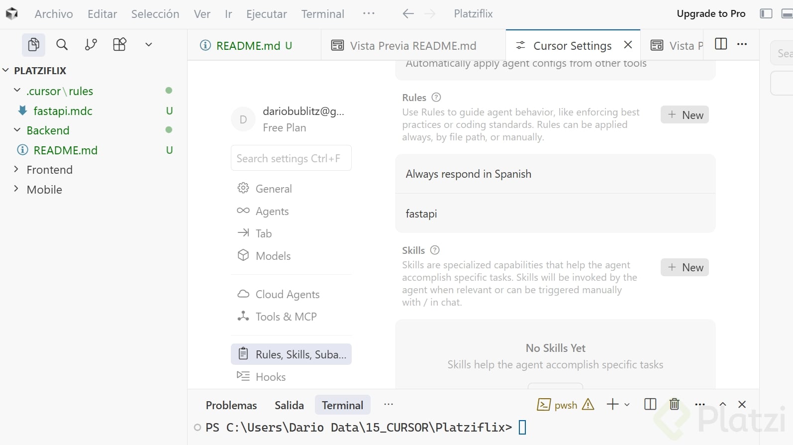 Configurar correctamente el contexto y las reglas de un proyecto es esencial al trabajar con inteligencia artificial para generar código efectivo. En este caso, aprenderás cómo establecer la estructura inicial del backend con FastAPI, Python y Postgres en la plataforma Cursor, asegurando un ambiente claro y simplificado.