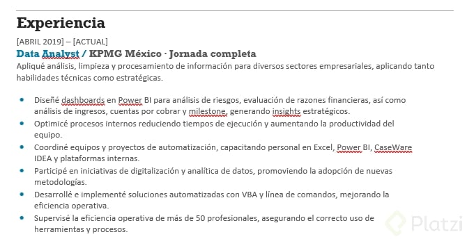 - Capacidad de reacción ante crisis: Destácala ya sea dentro de la experiencia profesional o en la sección de habilidades.