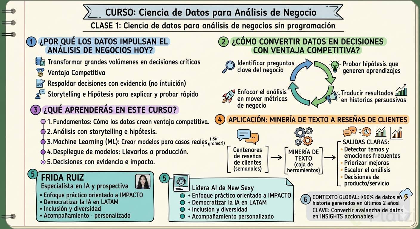 Los datos mueven el mundo y abren oportunidades reales para decidir mejor. Más del noventa por ciento de los datos de la historia se generaron en los últimos dos años, y la clave es convertir esa avalancha en insights que impulsen el negocio. Aquí se presenta cómo la ciencia de datos para análisis de negocios te lleva desde los fundamentos hasta aplicar machine learning en problemas reales.
