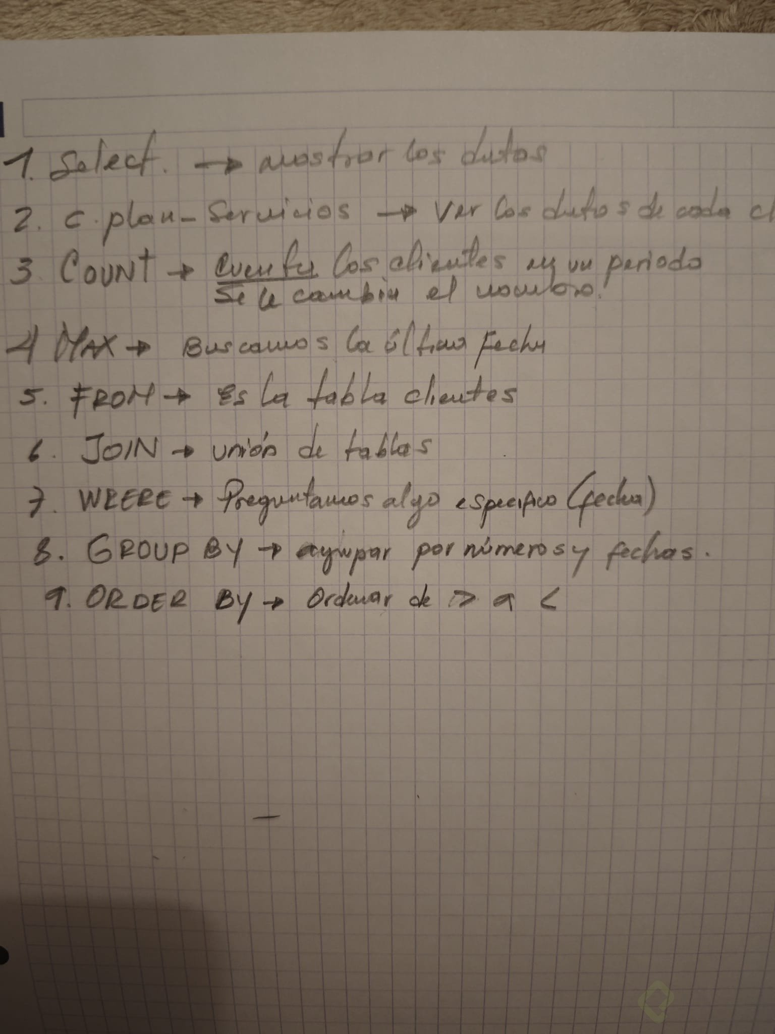 - order by ordena resultados, por ejemplo, total de ventas de mayor a menor.