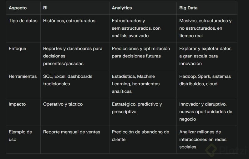 Elegir entre Business Intelligence, Analytics y Big Data puede cambiar la forma en que decides y ejecutas. Aquí encontrarás una guía clara para saber qué pedir, cómo pedirlo y a quién pedírselo, usando términos clave como análisis descriptivo, modelos predictivos y prescriptivos, además de tecnologías como Spark, Kafka, bases no relacionales y data lakes.