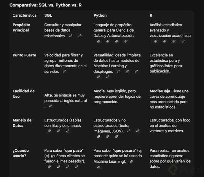 ¿Qué hace cada herramienta de datos: SQL, Python y R?