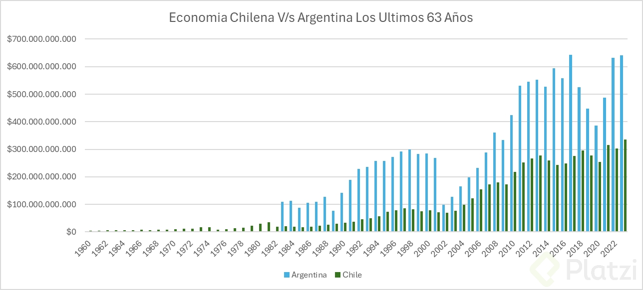 Estas gráficas son básicas y requieren elementos adicionales para ser presentadas formalmente: indicar que el cambio porcentual corresponde al producto interno bruto, incluir la fuente de datos, entre otros detalles. Sin embargo, representan un excelente punto de partida.