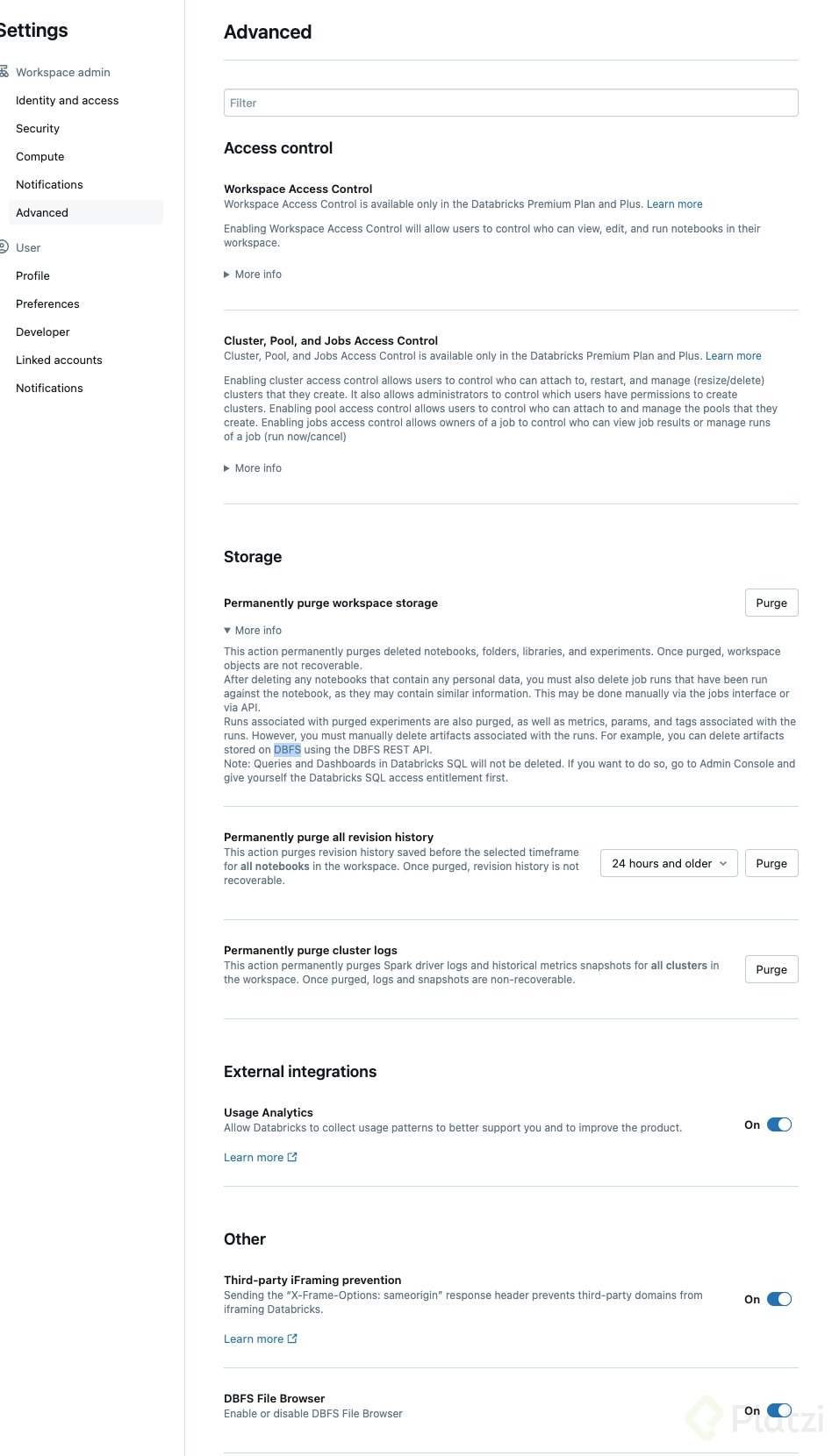- Ve a Admin Settings, habilita el Databricks File Browser.
