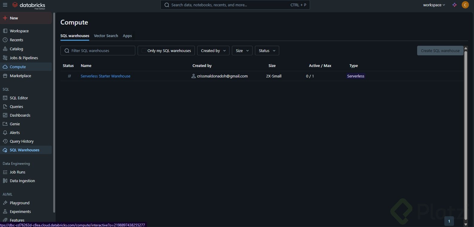 Una vez activo nuestro clúster, en la sección de "Compute" podemos: