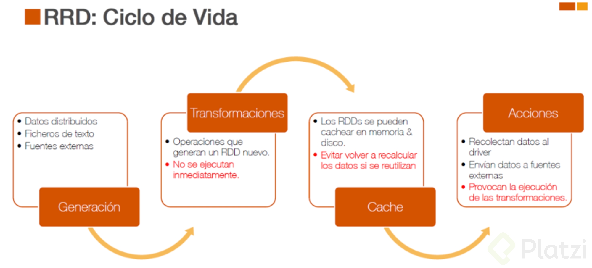 Resiliencia: Los RDDs pueden recuperarse de fallos, lo que protege el flujo de trabajo ante posibles interrupciones o errores en el sistema.