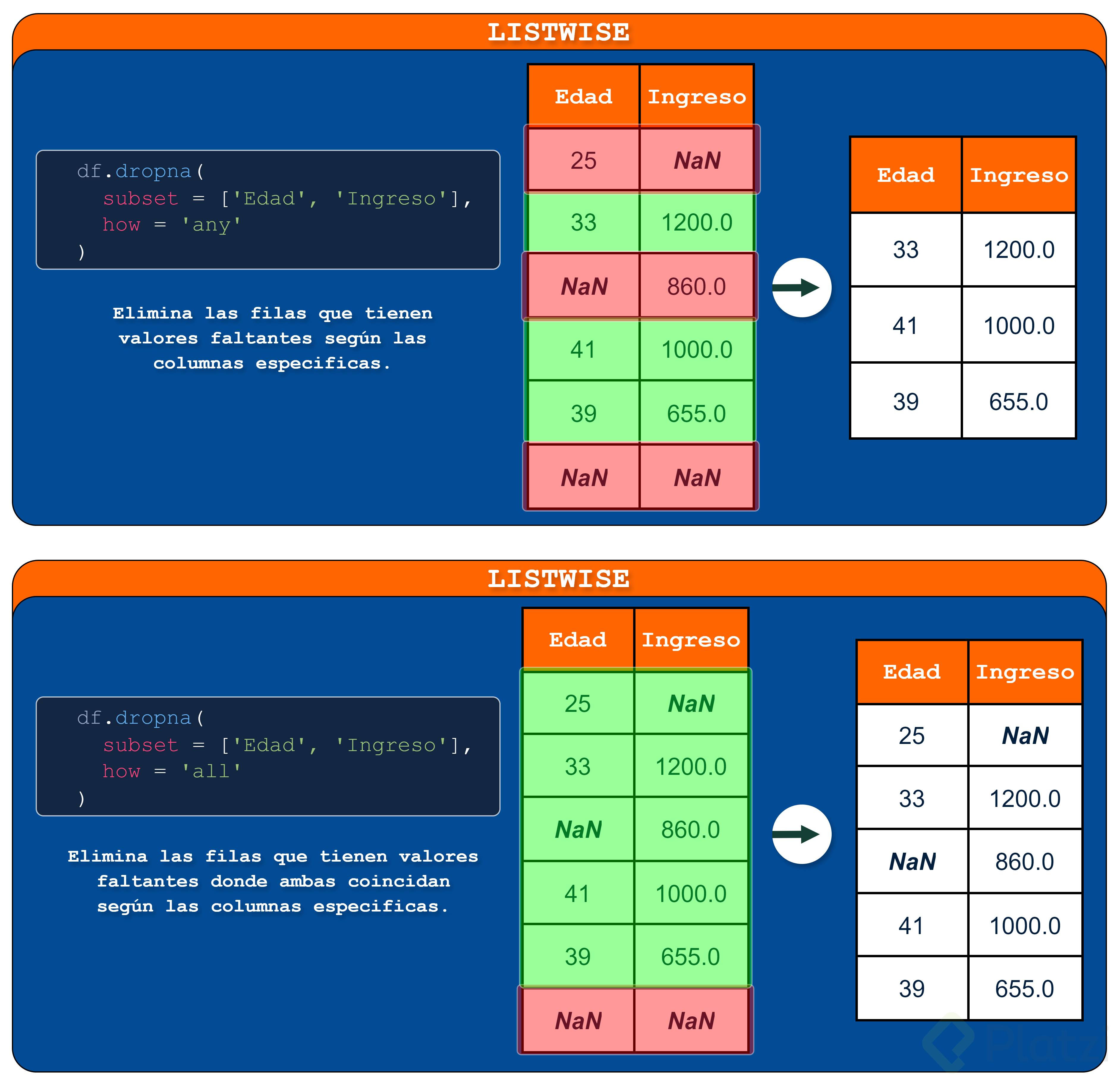 Eliminación de valores faltantes: pairwise y listwise
